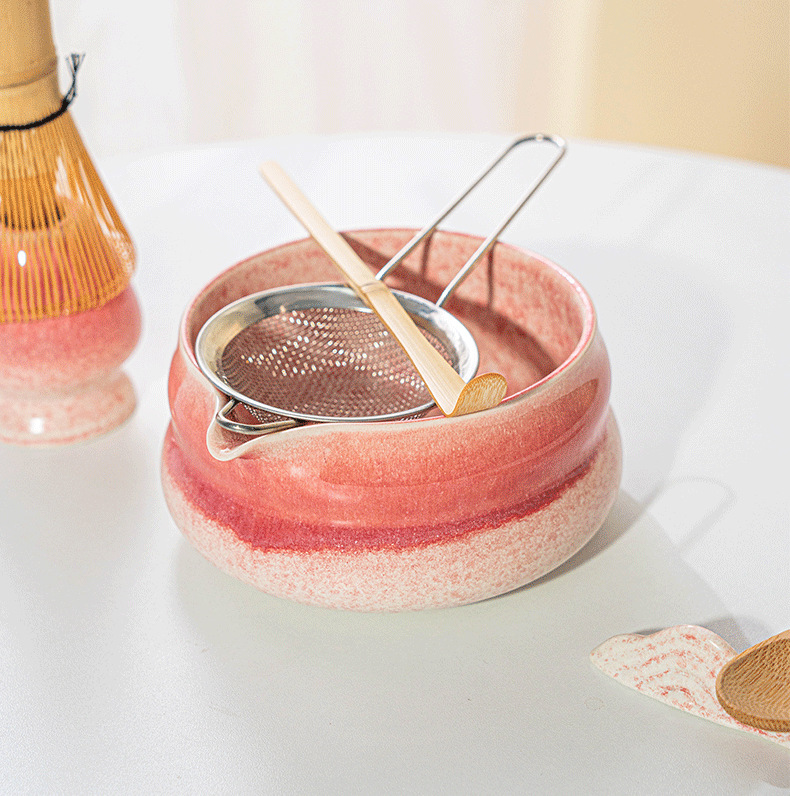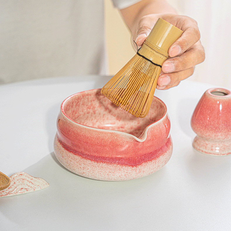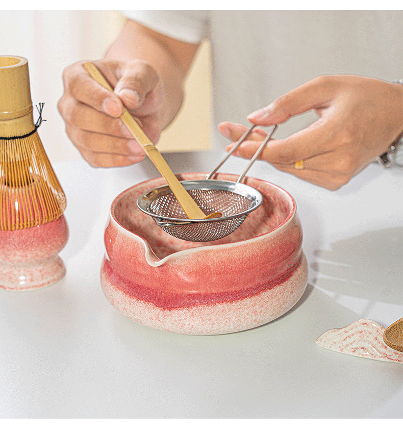 Matcha bowl Ceramic Matcha Green Tea Chasen Holder Stand Bowl Bamboo Whisk Grinder Brushes Tea Tools Holder Gradient Color