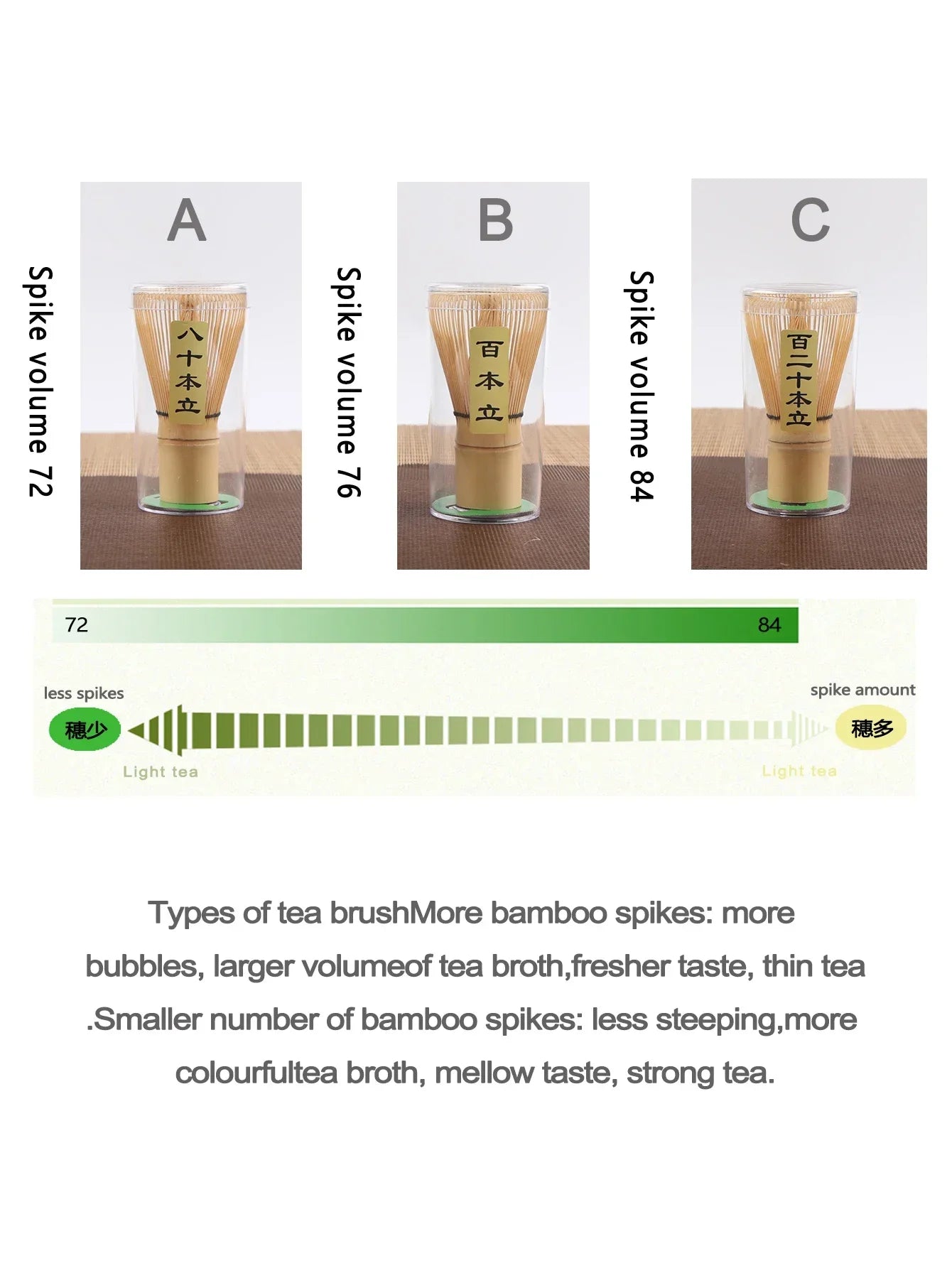 1. Material: Made by Bamboo, different from the traditional metal whisks that leave you with bitter tasting tea. Our bamboo tool set provides a much better, more delicious flavored tea.